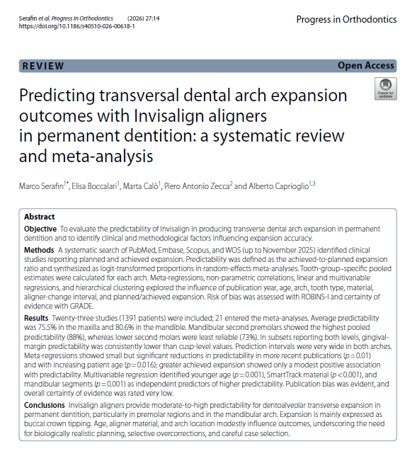 Flash news Nuovo articolo del Prof. Caprioglio sull’espansione mascellare con allineatori Aprile 1, 2026 by Alberto Caprioglio 0